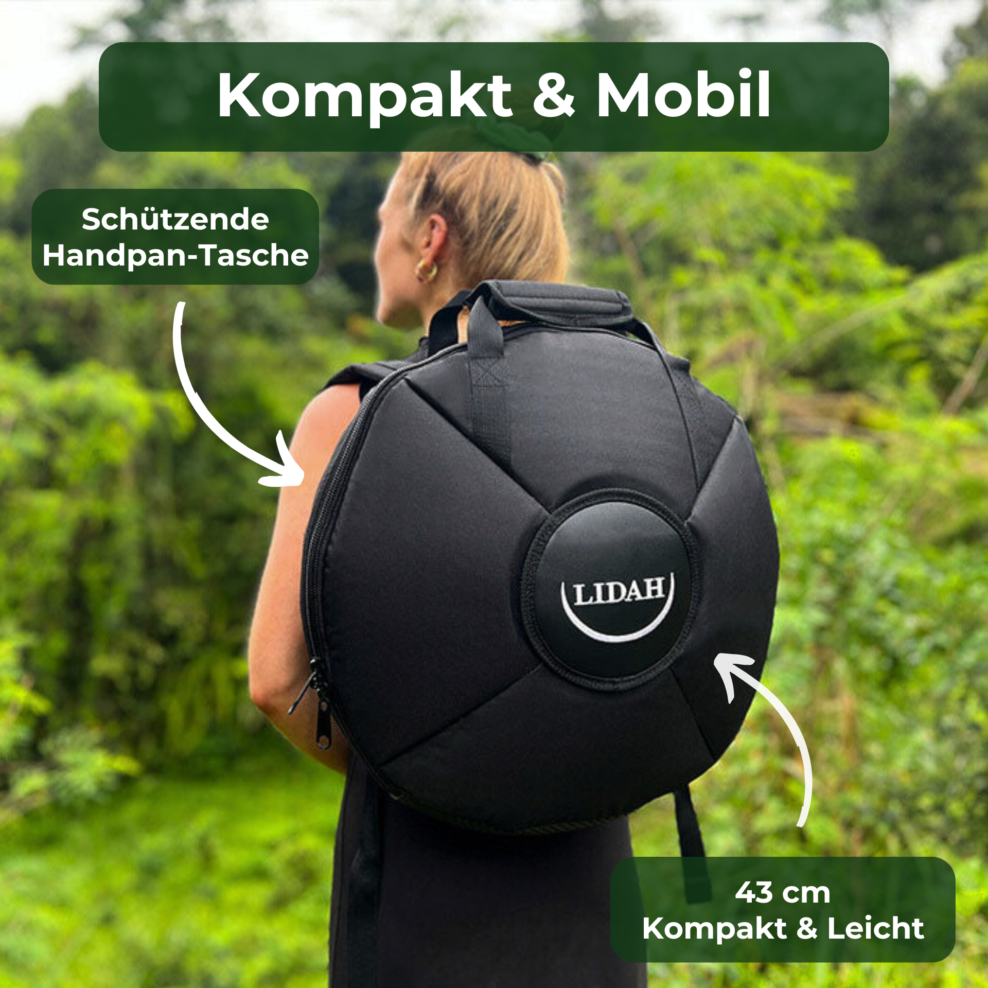 Eine robuste Handpan-Tasche schützt deine Handpan und macht den Transport leicht und sicher.
