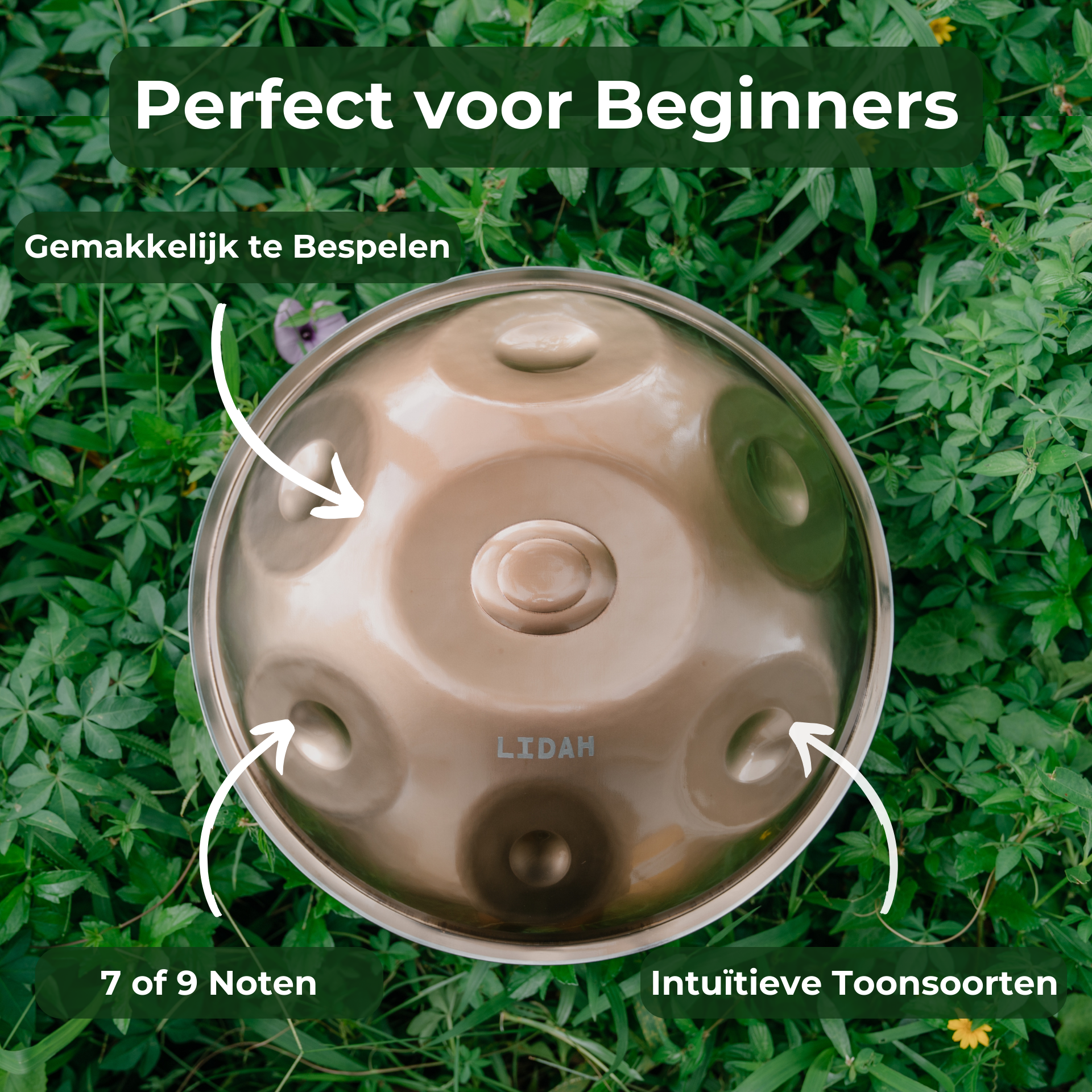 Voor beginners is de meest populaire en veelzijdige keuze de D Mineur Kurd (D Kurd 10). Deze handpan heeft een breed emotioneel bereik—van meditatief en melancholisch tot opbeurend en vrolijk. Alle tonen klinken prachtig samen, waardoor je intuïtief kunt spelen zonder dat je je zorgen hoeft te maken dat je een verkeerde toon aanslaat. Weet je nog niet precies wat bij je past? Dan is de D Mineur Kurd een prachtige én veilige keuze.