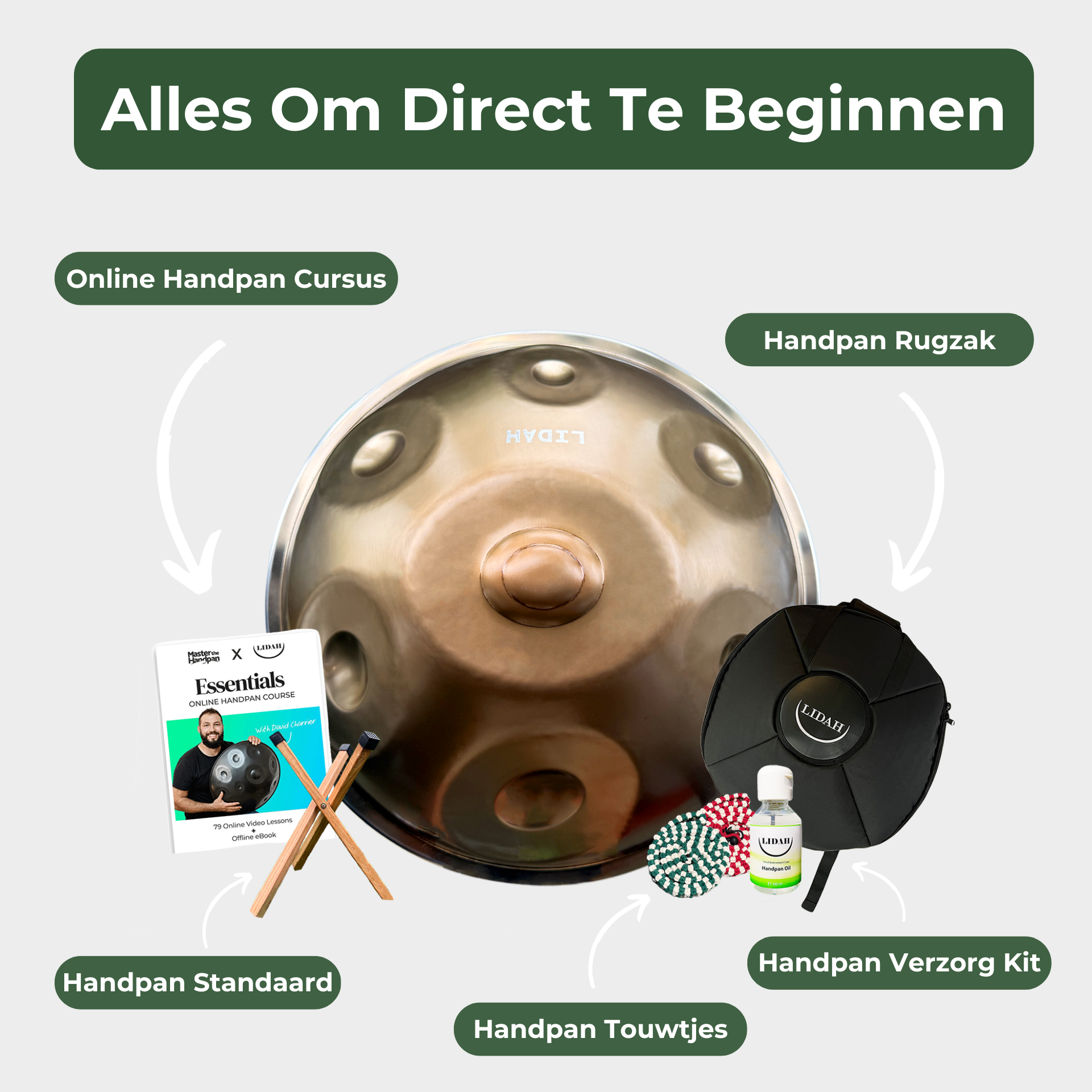 De meeste beginners kunnen al binnen een paar dagen eenvoudige ritmes spelen. Met wat oefening ontdek je vanzelf meer melodieën en technieken. Om je op weg te helpen leveren wij gratis bij onze handpannen, een volledige Master The Handpan cursus, met meer dan 70 lesvideo’s en levenslange toegang. Dit maakt het makkelijk voor beginners om van start te gaan en hun vaardigheden op hun eigen tempo te verbeteren.