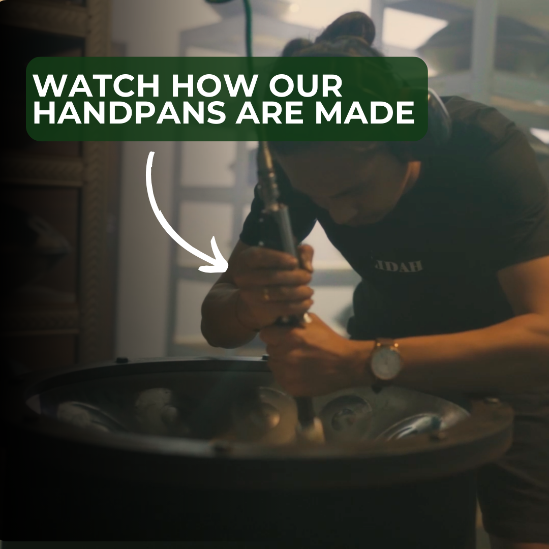 All our instruments are handcrafted in our Bali workshop by our small, experienced team. Each handpan is shaped, tuned, and finished with precision and care, combining craftsmanship with modern innovation. The result: instruments with soul, made to inspire for years to come.